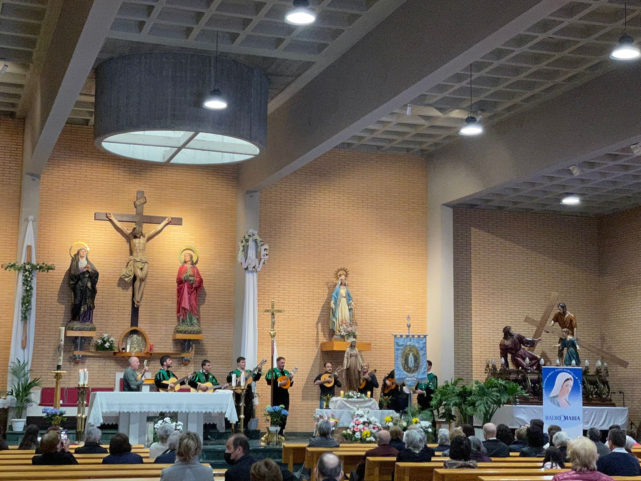 En la mañana del domingo, 24 de abril, el Obispo de Cuenca, Monseñor José Mª Yanguas, ha oficiado en la parroquia de San Fernando la Misa de despedida a la imagen de la Reina de Radio María que durante estos días ha visitado Cuenca. También ha saludo a los novios que han finalizado el Cursillo Prematrimonial.